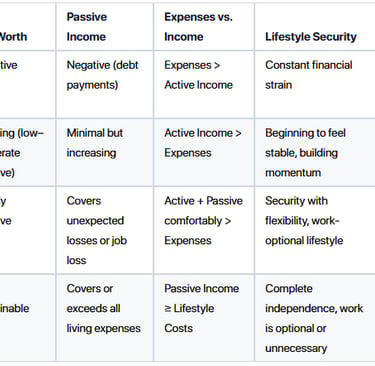 Description: Passive income fully covers (or exceeds) day-to-day living expenses, allowing complete independence from active work. At this stage, you no longer rely on employment to maintain your lifestyle.