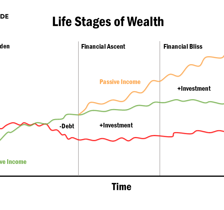 The Life Stages of Wealth framework is designed to simplify complex financial ideas into four clear stages. Each stage reflects your relationship with income, debt, and investments, helping you build awareness of how money flows through your life.